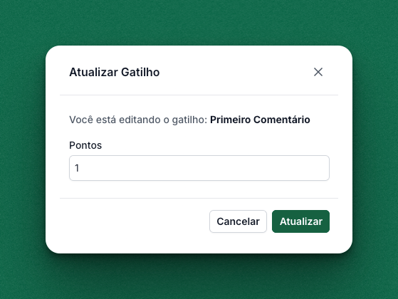 Você pode definir quantidades de pontos diferentes para cada ação: